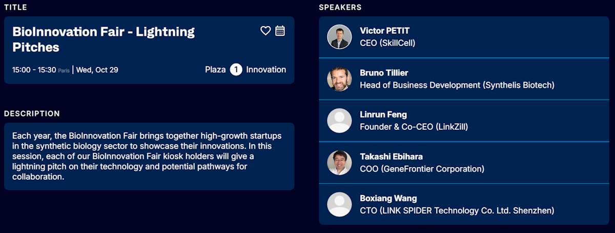 10月29日 15:00 – 15:30, Plaza 1 (Innovation) “BioInnovation Fair – Lightning Pitches”